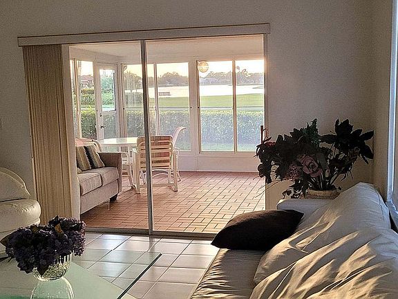 The living room has large sliding-glass door that opens to a screened in patio, that has a clear beautiful view of the lake. The home is light and bright due to the exposure, which was a premium upgrade when originally purchased, prior to being built.