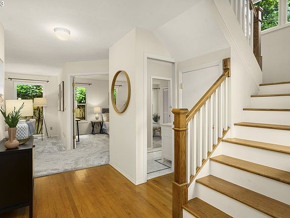 You really CAN have it all! Enjoy the privacy and autonomy of a detached, single family home with minimal landscaping and lot maintenance. Relish the convenience of a close-in SW Portland location, with quick, convenient access to shopping, dining, transit and a variety of easy commute options without the noise, congestion or hustle and bustle of the inner city. Have a Portland address but live just outside of the city's jurisdiction. (Home is located in unincorporated Washington County). Live entirely on the main floor or make full use of the entire home. The smart, efficient floor plan, offers a multitude of options. With a bedroom, bathroom, laundry and garage all on the main floor, it is well-suited for all stages of life. Living spaces are open and connected while offering distinct areas to pursue alternate activities. Upstairs offers two more bedrooms (or a bedroom and a family room) plus a cozy bonus room (which works well as a library, play room, office, or non-conforming guest bedroom). Kitchen and bathrooms are tastefully updated with timeless finishes, including tile inlay floors and marble-top vanities in the bathrooms, hardwood floors, granite counters and updated cabinetry in the kitchen. Carpet throughout home was replaced and hardwoods installed on stairs in 2018. Even the garage has been updated with a fully-finished and freshly painted interior and an attractive epoxy-coated floor! This low-maintenance, corner lot is set on a quiet cul-de-sac of attractive homes and is surrounded by trees and vegetation providing lovely, natural outlooks from every window and exceptional privacy. Outdoor space includes a front garden courtyard and covered porch, a private back patio and a fully-fenced side yard.