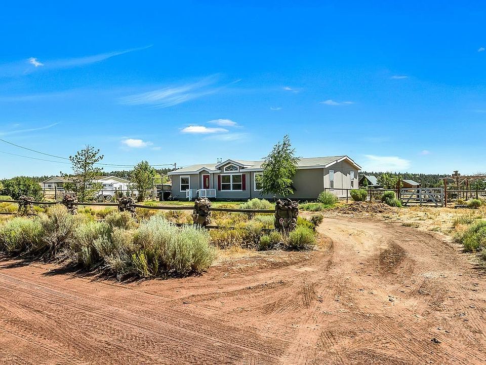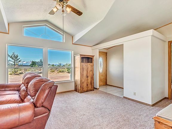 Between Bend & Redmond lies a 2.5 acre hobby farm with glorious mountain views & lots of room for gardens, horses, 4H animals or other critters. There's a small barn, large fenced dry lot, greenhouse, chicken pen with coop & raised beds. This move-in ready home with new carpet has a master separated from the other bedrooms with a walk-in closet & soaking tub.
