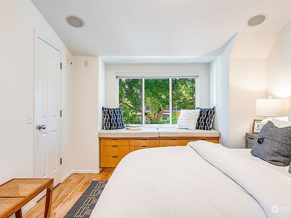 Turnkey, light-filled end unit townhome in the heart of all that Green Lake and Roosevelt have to offer! Refinished hardwoods throughout the open main level with spacious kitchen, featuring Bosch dishwasher and gas range. Upstairs bedrooms enjoy hardwoods, vaulted ceilings and walk-in closets. Rare private yard spaces perfect for summer. Unique features include balcony, window seats with built-in storage, in-ceiling speakers, jetted tub and more. Cozy gas fireplace. Convenient 1-car garage plus storage. Nestled on a quiet, tree-lined street with Green Lake park, coffee shops, restaurants, grocery stores, light rail, bus lines, and I-5 all just moments away. No HOA, no rental restrictions. Do not miss this quintessential Seattle opportunity!