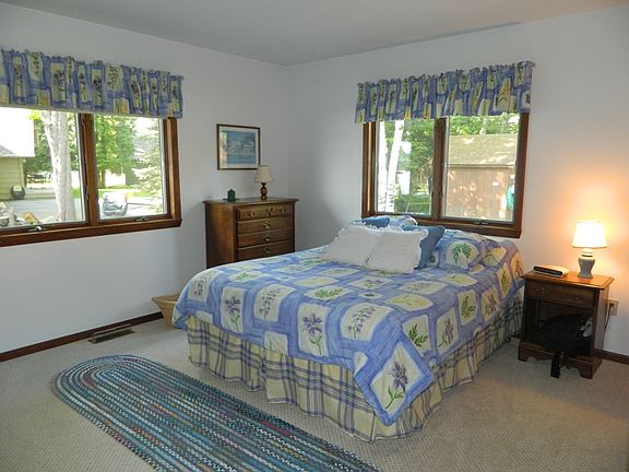 JUST REDUCED!!! Waterfront chalet with separate guest quarters on 120' of Hubbard Lake west shore. Perfectly level to the waters edge. 3 bedroom, 2 bath, open, bright kitchen dining and living area with wood burning wedge stone fireplace. Master bedroom has sliding glass doors entering a balcony overlooking picturesque Hubbard Lake. Kitchen has wood flooring and reverse osmosis, bathrooms have ceramic flooring. New septic system in August 2015. Newer carpet throughout the home adds warmth to the immaculate, well cared for home. All Anderson windows, central air, Tora in ground water system, Trane furnace, Culligan water softener, blacktop drive, hot tub and walk around deck. Patio area on the west side of the home to escape to if the wind is from the east. Guest quarters is separate and totally self contained. It has a full view of the lake, tongue and groove pine walls and cathedral ceilings throughout. Open living area has a glass door wall entering the deck that overlooks the lake. Two car garage that has double doors entering the patio area.