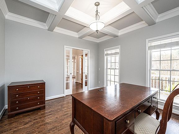 Welcome home! Located near Lake Hickory, this 5BR/4BA home exudes elegance and Southern charm! From the covered front porch to the arched entryways, you will love the many details and features this property has to offer. An inviting 2-story foyer opens to the formal dining room w/gorgeous tray ceiling & wainscoting as well as a home office w/coffered ceilings & french doors. The kitchen provides the chef of the house access to bar seating & breakfast nook with a view of the pool, back deck & living room w/gas fireplace! The main level also has a guest bedroom w/full bathroom. The upper level provides the owner's suite w/large ensuite bathroom w/separate shower & tub & a WIC, 3 additional bedrooms and laundry room. The basement is a great place to play! There is a den, a theater room, bathroom, & a workshop. Positioned on almost an acre with room to entertain & play. In turn-key condition and ready for new owners! Storage galore! A must see!