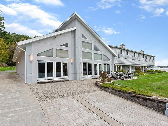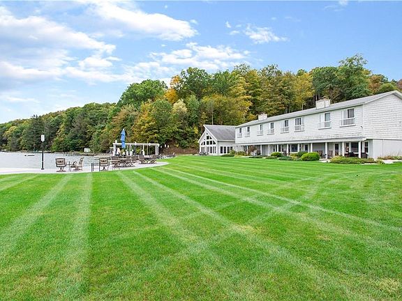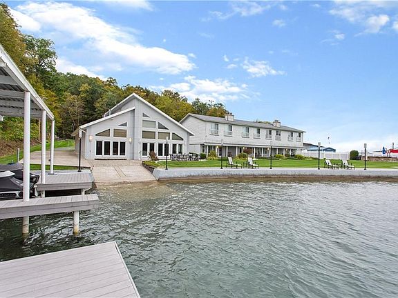 Absolutely "one of a kind" Skaneateles Lakefront retreat with 368 feet of pristine level waterfront. This unique property features fully developed waterfront with permanent seawall, docking, lifts & ramp. Spectacular outdoor kitchen with granite counters, stainless appliances & amazing lake views. This property offers a 2600 sf 3-bed, 3-bath contemporary ranch, AND a FOUR unit town home. Each 1,288 sf unit includes 2-beds, 2.5-baths. Perfect for a large group that wants to spend quality family time together with separate living quarters. Additional amenities include oversized 3 car garage, boat storage building, basketball court, covered patios, permanent docks, watercraft lifts, boat ramp and so much more. Property includes an additional 5.5 acres with over 600 feet on Glen Cove Rd. Ideal for a home or additional storage building. If your client is looking for level lakefront on Skaneateles Lake, this is about as good as it gets! Be sure to check out the drone video link!