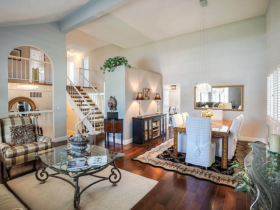 Just down the street from Almaden Valleys Quick Silver County Park in the popular Pierce Ranch neighborhood is 6518 McAbee Road with 5 bedrooms, 3 baths and 2582+/-sf of living space. One bedroom and one full bath are on the main level. The home is full of designer touches. Sumptuous master retreat with custom glam room designed for a private make-up vanity and dressing room space. Behind a glass French door with plantation shutters is a 130sf custom designed walk-in closet. Custom organizers and shelving offer lots of room for shoe and handbag collections. Fabulous kitchen with granite slab counters, subway tile backsplash, white cabinetry, a tray ceiling with recessed lights and apron kitchen sink. Backyard is exceptional for for entertaining and has a large deck off the kitchen area that steps down to a concrete patio. Three car garage.