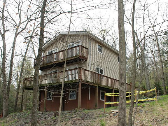 PLENTY OF SPACE in this 5 Bedroom 2.5 Bathroom home that features 2 Kitchens, a walk out balcony off of 2 of the bedrooms, a walk out Wrap around deck off of the living room, a large family room in the basement and so MUCH MORE !!! Located in an Amenity filled community near all of the Major Pocono Attractions and just a hop skip and a jump away from the delaware Water Gap . CALL TODAY !!!!