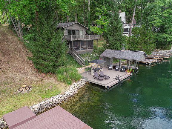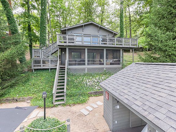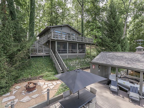 Location Location Location! This updated, ready to enjoy, turnkey home boasts all the benefits of big water views with quiet cove privacy. All the furnishings/appliances you see in the photos are included. Truly turnkey! Large kitchen and great room space with cathedral ceilings perfect for entertaining. Walking in the front door welcomes you with expansive views of the lake out the large windows on the main level. Beautiful decor and furnishings that will allow you to simply bring your swimsuit and move in. Large deck off main level, and covered screened-in porch off of walk out basement designed to satisfy all types of outdoor enjoyment. Very few steps to the water makes access to the large dock, covered boat lift, and fire pit patio a breeze. Enjoy this deep clean cove for swimming and other family fun. Family photos are the only thing to be removed before closing. THIS PROPERTY IS A MUST SEE!