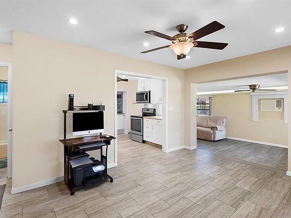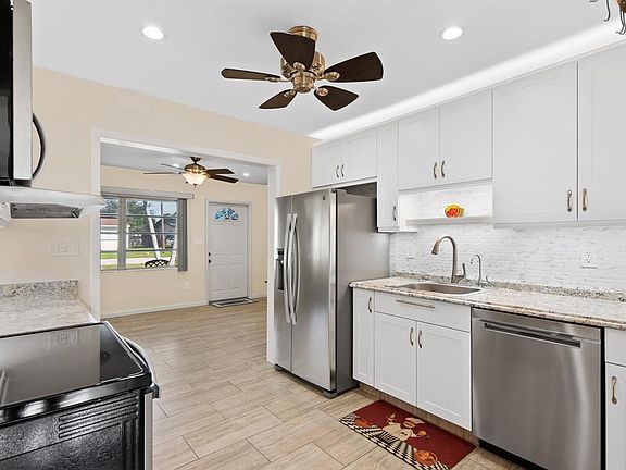 Updated and spotless home in desirable Welwyn Park area with new roof in 2021! Light and bright with newer white kitchen cabinets with soft close doors/drawers. Stainless steel appliances and a front load washer & dryer. Remote water filtration for kitchen. Newer water heater. Beautiful porcelain tile flooring throughout the home. Updated 150amp electrical panel that is generator ready. Updated bathroom with a cast iron tub with safety grab bars. Recessed lighting and hunter fans throughout the home. Relax in your screened patio overlooking a spacious and green fenced yard. 10x10 storage shed with electric. Large concrete driveway can fit 4 cars. Whole house surge protection. Recent City hookup to water and sewer lines. Landscape lighting in front yard and back yard gazebo.
