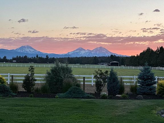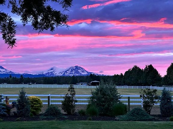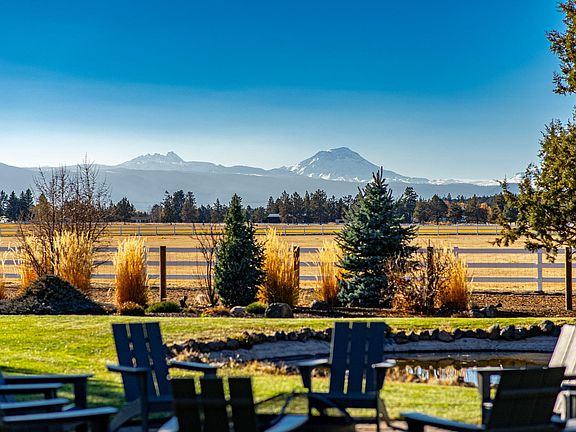 Secluded at the end of a quiet cul-de-sac with unparalleled sweeping Cascade mountain views, this beautifully renovated, single-level, northwest modern home is the perfect place to embrace nature. Set on 3.78 fully fenced and gated acs with 1.4 acs of underground Tumalo District irrigation, the property features a stocked irrigation pond, low-maintenance lavender hobby farm with greenhouse, bee boxes, and irrigated garden beds—perfect for cultivating a sustainable lifestyle. The open flowing floor plan is filled with natural light and takes in breathtaking views from nearly every room. The home boasts a 3-car garage plus a brand-new RV/boat garage with 14' roll-up door for all your toys. Whether you're soaking in the sunset under the covered patio, entertaining around the firepit, clear-sky star-gazing, or tending to your own gardens, this home offers a private and peaceful retreat, yet only minutes from shopping and amenities. This is more than a home—it's a haven all its own.