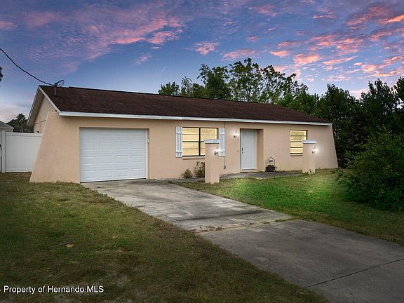 Welcome to this charming two-bedroom, one-bathroom home that perfectly balances comfort and functionality. As you step inside, you're greeted by a cozy living room that flows seamlessly into the dining area, creating an inviting space for family gatherings or entertaining friends. The beautiful kitchen is the heart of the home, featuring modern appliances, ample counter space, and plenty of cabinets for storage, making meal prep a delight. The bathroom is thoughtfully designed with a convenient tub-shower combo, providing a relaxing retreat after a long day. Both spacious bedrooms offer plenty of natural light and room for personal touches, ensuring a restful atmosphere. Practicality is enhanced with an inside laundry room, making chores a breeze. The home includes a one-car garage, providing additional storage and easy access to your vehicle. Step outside to discover a large, fenced backyard, perfect for outdoor activities, gardening, or simply enjoying the fresh air. A shed is nestled in the corner, offering extra space for tools and equipment. Located just minutes from the Suncoast Parkway, commuting to Tampa is quick and easy. This home is also conveniently situated near schools, shopping, and dining options, all while being in the beautiful community of Spring Hill. Whether you're a first-time buyer or looking to downsize, this home offers the perfect blend of comfort and convenience!