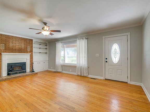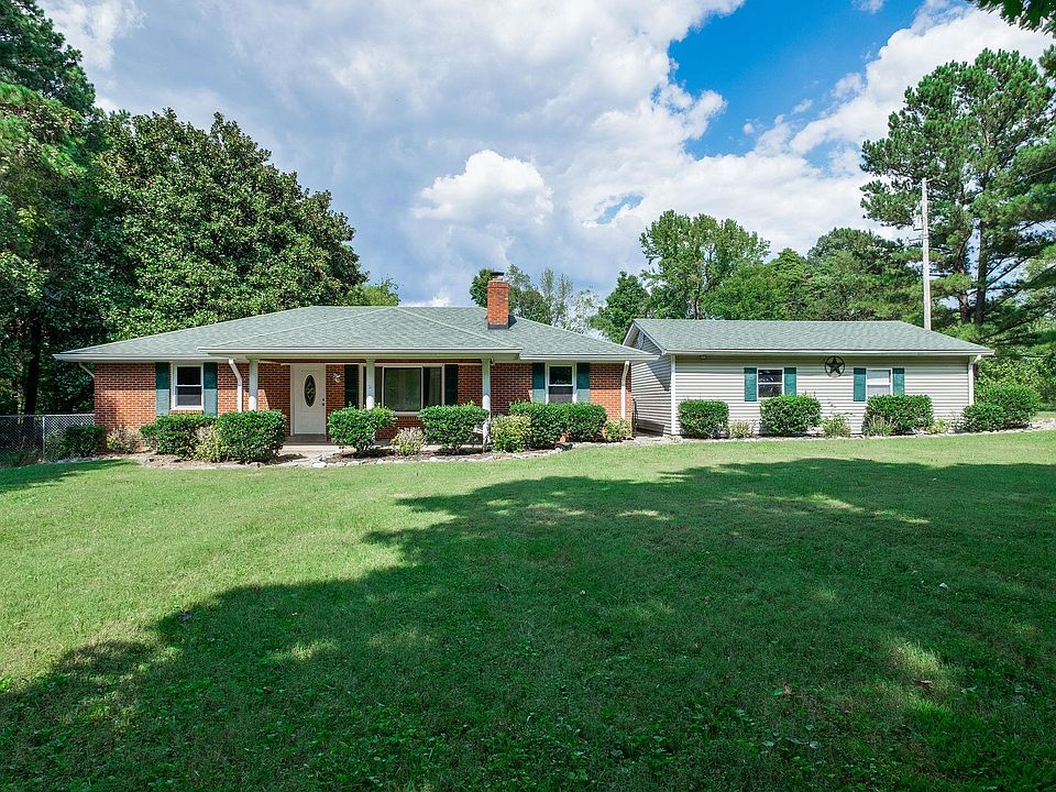 This charming all brick home is move in ready! Convenient location on a 2 acre lot, rocking chair front porch, custom built in shelving & storage, fresh neutral paint throughout, original hardwood floors, extra large detached garage, large fenced back yard w/ relaxing stone pond. This property offers so much character! Home is on a 2 bedroom septic