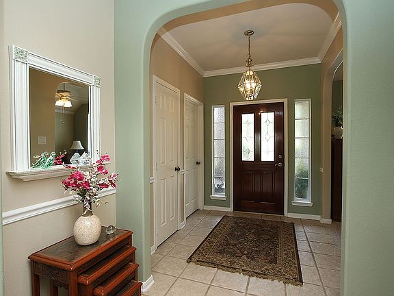 Outstanding one story in a golf community backing to a greenbelt. This immaculate Lennar home boasts of soaring ceilings, open plan, fireplace on an inside wall, breakfast bar, fresh paint, NEW ROOF, an abundance of windows, arched doorways, master with vaulted ceiling, huge closet, double sinks, vanity area, garden tub and separate shower. The large patio is bricked with pavers and has mature trees and lush landscaping. There are no neighbors behind giving lots of privacy!