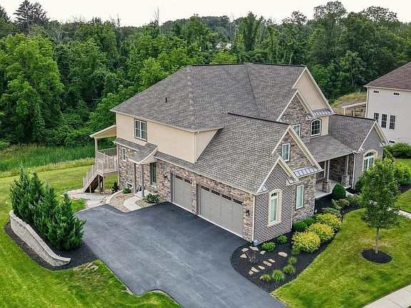 Stunning, Ionni built, three-level multigenerational masterpiece offering 6,190 sq. ft of living space. This custom, open floor plan was surgically designed for every possible need of modern living with magazine-quality architecture that was featured in the Central PA Parade of Homes. Built in 2015 and renovated in 2021, this one-of-a-kind property boasts 7 bedrooms (including 2 primary suites), 4 full and 2 half baths, 2 full kitchens with pantries, formal and casual dining areas, a breathtaking great room, 3 car side entry garage, and 2 multi-purpose rooms for a home office, movie theater, artist studio or your desired needs. The expansive main level hosts an exquisite primary suite with a custom double tray ceiling, Hickory hardwood floors and a spacious en-suite bathroom consisting of 2 walk-in closets with built-in cabinetry, a two-story ceiling with a dormer-window tower and an oversized walk-in rain shower. The custom kitchen offers quartz countertops, oversized island, walk-in pantry, Bosch appliances, double wall oven, 5-burner gas cooktop with a pot filler water faucet and is open to a massive great room featuring a 13-foot coffered ceiling, natural gas fireplace, and beautiful Eucalyptus hardwood floors. The formal dining room has an illuminated tray ceiling and arched openings. The main level also offers a media package, with speakers in the great room, dining room, kitchen, master bedroom, and deck, that includes Bluetooth technology receiver ready to customize to any number of entertainment options. The second level will not disappoint. On this level, you will find 4 large bedrooms (each with their own walk-in closets), a Jack-and-Jill bathroom design and 2nd full bath. In addition, there is a bonus room nicely tucked away between two of the bedrooms that could be used for storage space, a study zone or recreational room. Both full baths have granite vanity tops and ceramic tile floors. The lower level in-law suite is bright, with scenic views from each room and was impeccably crafted by J.W. Mumper Construction to the last detail in 2021. This area offers 1940 square feet of living space with a full kitchen, private laundry area, 1.5 baths, a separate entrance, and its own heating/cooling zone. The kitchen features an oversized island, dining area, quartz countertops, ceramic tile backsplash and walk in pantry. There are two bedrooms (including a massive master bedroom with en-suite, walk-in closet, and space for a couples retreat/lounge. We will also find solid-core luxury vinyl plank flooring throughout, a large outdoor patio, and access to a very generous storage area. Additional features include a new natural gas HVAC system with 3 heating/cooling zones, humidifier, UV air filtration system, and WiFi connectivity for full system control from a smartphone app. New on-demand tankless water heater, new lighting fixtures, covered composite deck with panoramic woodland views and privacy to the rear, professionally landscaped, custom electric silhouette shades on the main level, Lutron Casta Wi-Fi smart switches throughout, a spacious 3 car garage that actually fits 3 cars or SUVs with ample space to spare, all appliances included and much more! This home has it all!