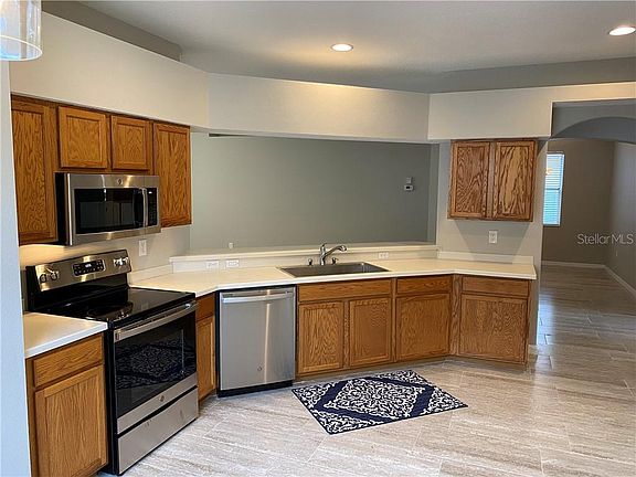 - Interior Features: Ceiling Fans(s), Eating Space In Kitchen, High Ceiling(s), Open Floorplan, Split Bedroom, Walk-In Closet(s), Solid Wood Cabinets, Thermostat, Solid Surface Counters, Window Treatments