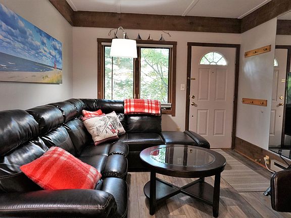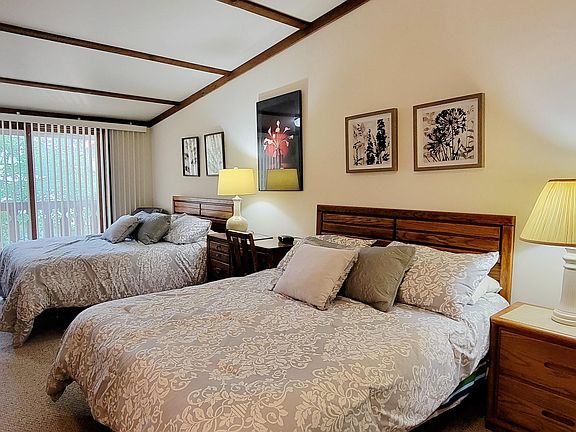 Bergrand 503 is steps away from the ski mountain, pool and winter restaurant and a stones throw to the Schuss Golf Course. This 2 bedroom, 2 bathroom townhouse condo has a stunning renovated kitchen. Stainless appliances, granite counters, tile back splash. High end laminate/water proof wood look flooring. Upper level has one large bedroom plus an extended loft area with bunk bed. Spacious main level bedroom has private entry and bath. There's a modern iron spiral staircase, top up/bottom down blinds, and expanded deck.