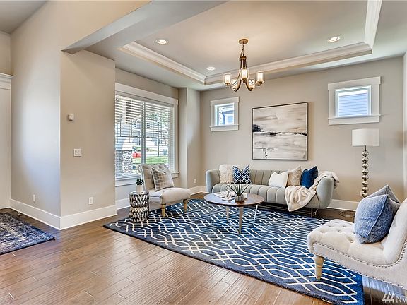 Sophisticated fine architecture and timeless style are yours in this distinctive residence built by American Classic Homes. Soaring entryway opens to grand and gracious rooms, ten foot ceilings, exquisite curved staircase, gleaming floors, rich finishes. Impressive, well-equipped kitchen features enormous island, professional Thermador Apple appliances, pass-through butler's pantry with bar, wine rack, walk-in pantry for easy entertaining; opens to family room with classy fireplace. Upper level: Primary en-suite enjoys indulgent bath, sizable bedrooms, full guest bath; flex space / media room. Guest suite / den adjacent to 3/4 bath on main. Living space extends to covered patio; fenced yard. Three car garage has electric charger. Prime location to amenities, easy commutes. Ready to close! Call Rache now to find out more!