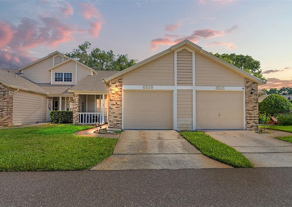 WELCOME TO THIS CHARMING UPDATED Villa in Briar Patch at 6519 Thicket Trail located Only Steps from the Club House & Community Pool. This Desirable 55+ Community (One Person to be at least 55 Years old - Minimum Age is 30 Years old for additional) is in the Fun Filled City of NEW PORT RICHEY... Downtown Music & Art Festivals, Farmer's Market, Sims Park, Cote River, Aquatic Park... So Much to Do & See. What Makes this Villa Special? The Location Near the Club House & Community Pool .. Do Not need to use the Additional Parking for the Pool as it is a Short Walk.. 2nd Villa to the Left. And this Villa has a Zero Entry Walk in Shower with a Handle Bar. Let's Start in the Front.. Front Covered Porch with Bay Window. Walk into a Soaring Vaulted Ceiling with Skylight to give the Home an Open Naturally Bright Floor Plan plus Luxury Vinyl Flooring Throughout. Step in Further to an Enclosed Florida Room with Shelving that has AC & Heat to give the Home Additional Living Space. The Kitchen is Quite Lovely with Plantation Shutters, White Shaker Cabinets, Quartz Counters, White Farmer's Sink with Wand Faucet, Breakfast Bar & Stainless Steel Appliances. Primary Bedroom offers a Sliding Glass Door into the Florida Room, Walk in Closet & Updated Vanities & Walk In Shower. Plantation Shutters are in both the Primary Bedroom and the Guest Bedroom. Washer & Dryer stay with the home & are located off of the hallway near the Guest Bedroom & Bathroom. The Guest Bathroom is a Tub/Shower Combo. 1 Car Garage that comes with a Tool Chest & Cabinet (19.5 ft x 13 ft) 2024 Roof, 2021 Trane HVAC with a 10 Year Warranty + 2-3 Year Old Water Heater. HOA is VERY AFFORDABLE at $215/Month & Covers quite a bit: Lawn Care (Mowing, Edging, Trimming Bushes, Fertilizing & Spraying for Pest), Sprinkler Care & Irrigation, Garbage, Exterior Paint, Roof (which was just put on last year). Great Location, Nice Neighborhood, Affordable.. Perfect for Snowbirds or to Make it your Retirement Home.. Come See.