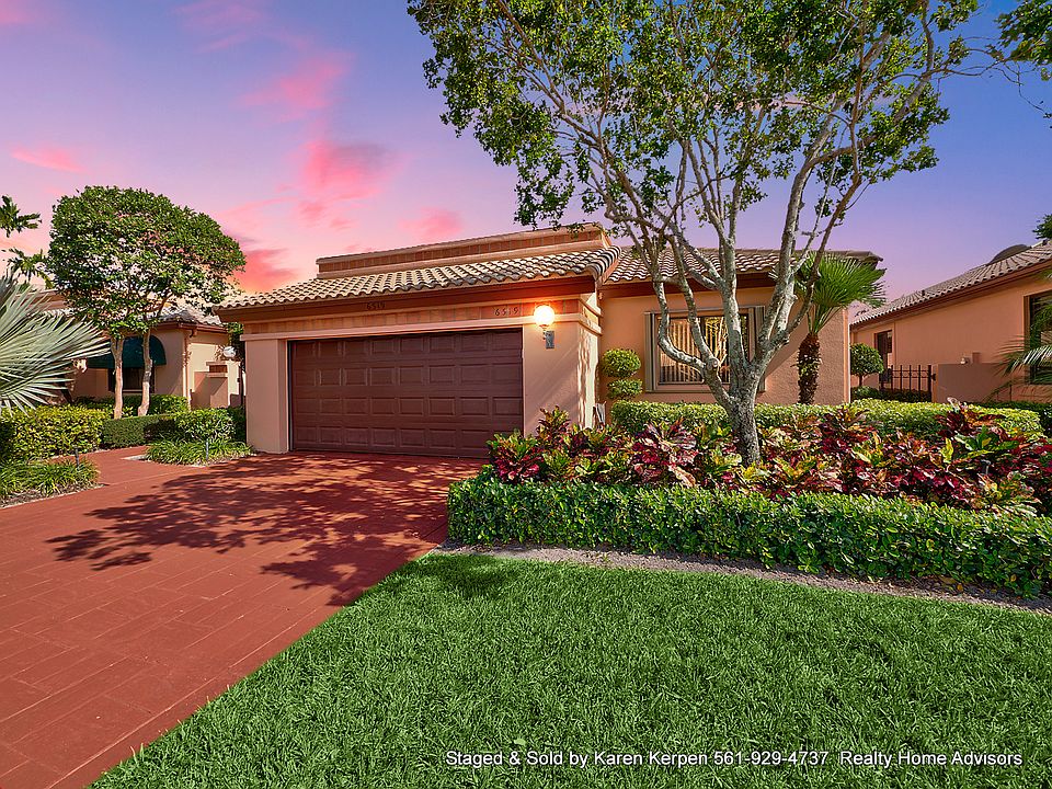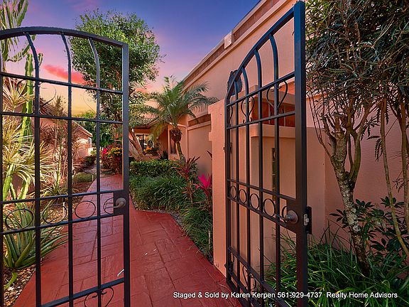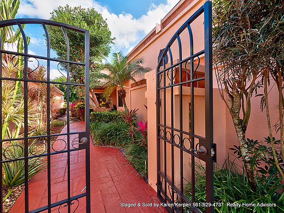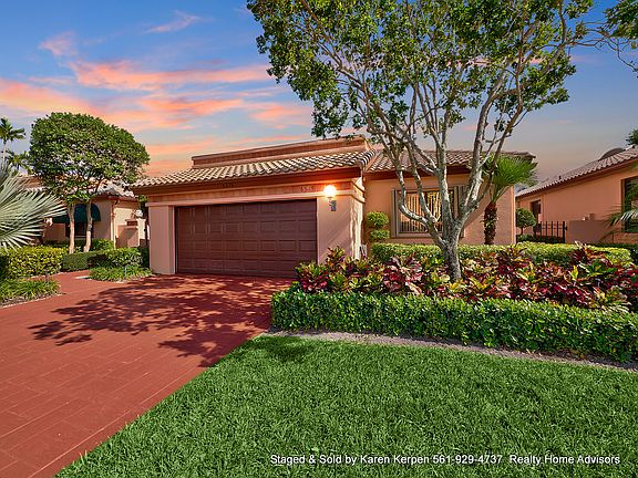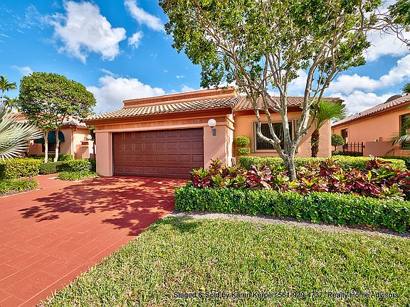 Beautiful Mediterranean fully updated one story single family home in prestigious Villa Flora section of Boca Pointe. Spacious & bright floor plan with high ceilings! Former model home, rarely for sale, very desirable''Capri'' model has 3 bedrooms & 2 baths. Fabulous foyer entrance w/sky light. Neutral tile through living area & new high end carpet in bedrooms. Beautiful built ins. New 1 Yr old roof!! Updated, oversize kitchen w/granite counter tops, wood cabinets, tumbled marble backsplash, custom pull out draws & desk area. Master bed/custom shelving in enormous closet. Large screened in patio w/private back yard. Most furniture negotiable. All ages/pet friendly community. Man Gated. Boca Pointe/where membership is NOT mandatory! OPTIONAL golf/tennis/gym & social memberships available. Sold by Realtor Karen Kerpen 561-929-4737 w/Realty Home Advisors