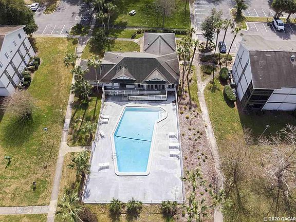 Move in ready 2nd floor unit conveniently located: Only 1/2 mile from North Florida Regional Hospital and The Oaks Mall, 3 miles from UF and 3.5 miles from Santa Fe. Huge master bedroom could easily fit a King size bed and has spacious master closets plus wall book shelves. Laundry room is right off of the kitchen and includes Washer and Dryer. Tile in living areas and laminate tile in bedrooms. Granite in kitchen and baths. Tile backsplash in kitchen and Stainless Steel appliances Spacious Living Room opens up to a screened-in balcony. Community includes green space and pool.