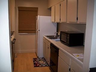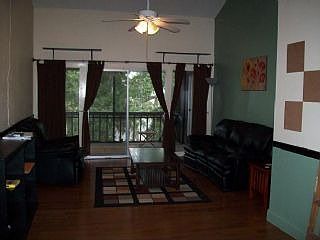 2/1 (The Oaks) Third floor condo with entry foyer that opens into Living room/ Dining room combination with 2 story vaulted ceilings and laminate wood floors. Over-sized sliding glass door leads to screened porch. Kitchen also has laminate wood floors. Hall has washer and dryer closet. Both bedrooms are carpeted, one has sliding glass door that leads to the screened porch. SPECIAL- the 1st tenant approved for a lease starting before July 1, gets their application fee of $50 refunded to them on 2nd months rent!!!!