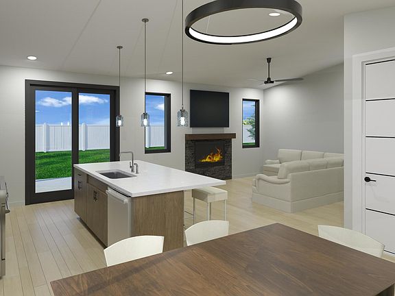 To be built New Construction with an RV Garage in Hollice Woods! The Juneau is a one-story, 1400 square foot home featuring a unique, yet functional design. The living area, with its modern linear fireplace, is located at the back of the home, capturing an abundance of natural light and adjacent to a large covered back patio. The kitchen boasts a breakfast bar/island with enough room for 4. The master bedroom suite dual sink vanity, walk-in shower and walk-in closet, two guest bedrooms and a guest bath round out this home. Quality standard features include cement lap siding, quartz with backsplash throughout, gas fireplace with masonry, central AC, and more! Upgrades available. 3 car and 2 car garage options available! Photos of previously built homes.