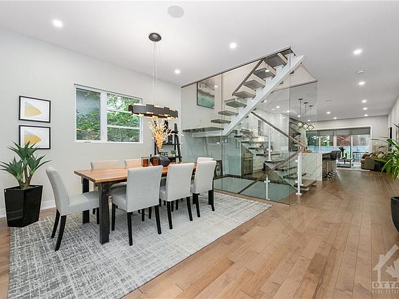 Impeccable contemporary residence on extra deep lot offers exceptional design with all the bells & whistles! Beaming with light, this striking semi boasts the perfect combination of opulent touches & functional flow throughout. Main level features open concept living with stunning kitchen featuring custom oversized cabinets, high end appliances, 10' quartz waterfall island; all flowing into the living & dining areas. Open glass staircase leads to second level with 9' ceilings offering spacious primary retreat with 2-way fireplace, stunning 5pc Ensuite & incredible walk in closet, as well as 2 generous secondary bedrooms, full bath & convenient laundry. Escape to your finished lower level with expansive gym or family room, storage area & full bath. Built in Speakers throughout. Lounge in the fenced rear yard & enjoy BBQs on the multi-level deck. Located in the heart of Westboro; mere steps from Dovercourt Rec Centre & walking distance to reputable schools, quaint shops & the transitway 2022-09-20