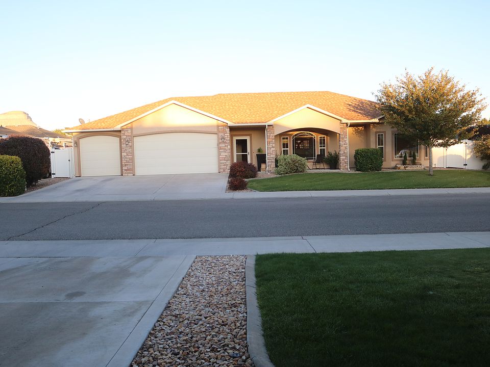 Beautiful stucco & stone home on the corner with a full solid vinyl privacy fence. professional landscaped and full sprinklers. Central air. Newer flooring. Large bedrooms, large master bath. Great kitchen with higher countertop. 3 car garage with 'slop' sink. Newer large shed. This is really a gem of a home. On a cul-de-sac. RV parking.