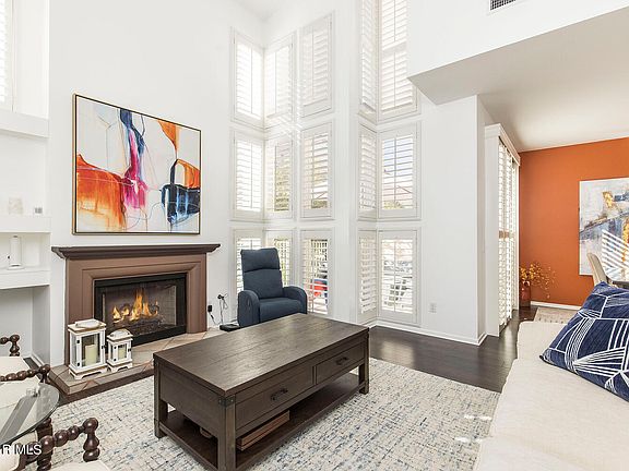 You'll feel welcomed the moment you step into this beautifully appointed Wood Ranch condominium. Vaulted ceilings in the formal living room with an abundance of windows filtering in plenty of light welcome you. Plantation shutters, laminate flooring, cozy wood burning fireplace in the living room are just some of the updates. The kitchen, one room over, is open to the family room. Granite counters, plenty of white cabinetry and stainless appliances make up the kitchen. All bedrooms are upstairs, which includes a loft with laundry closet, 2 guest bedrooms & guest bath, and the huge owner's bedroom. The connected bathroom offers a walk-in closet w/organizer, 2 sink vanity and separate tub & shower. This is an end unit with no neighbors on one side. The home also sides to open space and part of the tract's greenbelt. There is a small patio off the formal dining room w/gates opening up onto the greenbelt. The tract is security gated, offers a community pool/spa and is adjacent to a local park. The Wood Ranch community is one of Simi Valley's most desired neighborhoods. Hiking trails, horseback riding, Simi Valley Regional Mall, shopping, great restaurants and more are all within minutes from this home. It's a great life here on Cardinal Ridge. You need to find out why! It's time to come home...
