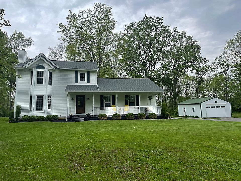 A nature lovers paradise! 2.8 acres of wooded privacy only 2 miles from Delaware. A single owner home with 3 bedrooms, 2.5 baths, wood burning fireplace, and a partially finished basement. Hardwood floors throughout, custom kitchen cabinets and granite countertops. Enjoy the wooded property from the bay windows in the living room and master suite. The dining area includes a beautiful 9 foot picture window. Enjoy a private evening in the screened gazebo. Plenty of additional storage in the 24' by 36' pole barn. Roof replaced and gutter guards installed in 2013. Guest bathroom remodeled in 2018.