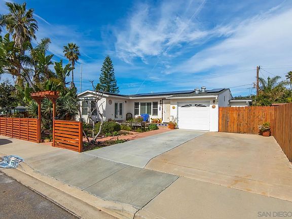 Beautifully remodeled beach home 5 blocks to the ocean w/ extensive homeowner upgrades! This 3 bed, 3 bath custom home is located on a desirable cul-de-sac & features a large 6,900 sq. ft. useable lot. The open kitchen features white shaker cabinetry, quartz countertops, large island, newer stainless steel appliances & custom tile. Spacious primary bedroom w/ remodeled en-suite & walk-in closet. The large family room features a vaulted wood ceiling & adjoins to the quaint office w/ custom built-ins. The entertainer's backyard includes a slate & concrete patio, pergola, shed, & walking paths to several mature fruit trees & vegetable garden. Upgrades include bamboo hardwood flooring, owned solar (installed 1/2023), ductless heating & A/C (installed 4/2023), newer tankless water heater, newer electrical & upgraded panel, electric car charger, newer dual pane doors & windows, plantation shutters, recessed lighting, newer paint, custom built-ins, french doors & remodeled bathrooms. Enjoy the beach & bay lifestyle w/ close proximity to iconic Imperial Beach Pier & local restaurants!