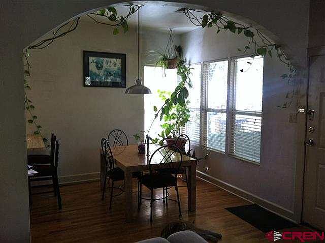 Rare historic downtown Durango offering in a great location for walking everywhere. This single level home of 1734 sf features three bedrooms plus an office, which was previously a fourth bedroom (closet now out), and two full baths. Nice front courtyard and private backyard completely fenced in. Offstreet parking dedicated to this home off the alley, plus a 12 ft x 27 ft back building, currently used for storage. This could easily be converted to a single or double garage, or a fabulous workshop. Electrical exists in the back structure. Main house features its original wood floors and was originally a duplex of two 2 bedroom, 1 bath units, and the back kitchen is still there minus the refrigerator and stove. Great woodstove in front living room and back living room is bright and sunny. High ceilings, warm paint colors and cheerful ambiance throughout.