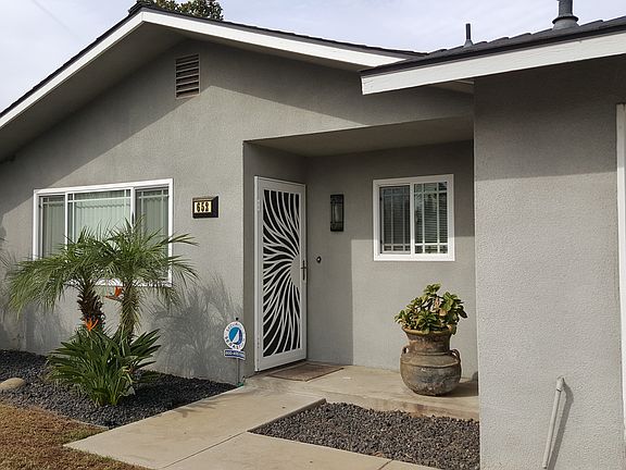 New HVAC system with new duct work, New roof, new dual pane windows. Automatic sprinkler system front and back. Privacy wrought iron front fence/gate. New fence at the East side of back yard. New carpet and floors, new paint and garage door with automatic opener. Ceiling fans in all rooms and light fixtures. Garage dry walled and new exterior paint and stucco. Garage has walled storage cabients. Storage shed in the back to match the house. Fully landscaped front and back. Remodeled gourmet kitchen. Storage shed