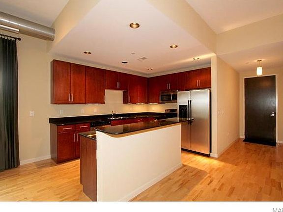 Enjoy the spacious feel of this 2 bedroom/2 bath condo with 10' ceilings! Open floor plan with lots of windows to illuminate the living room and dining room with planning desk area. Custom kitchen with 42 inch cherry cabinets, under cabinet lighting, granite counters, stainless appliances, brushed nickel hardware and recessed lighting. Living room has gas fireplace and custom built in sound system. Maple wood floors in living area and brand new (6/2015) carpeting in bedrooms. Both baths have tile floors, granite tops and stainless basins. Master has shower unit with seat, 2nd bath has tub/shower combo. 8 x 9 master walk in closet has custom shelving. In-unit laundry/storage area as well as large same level storage room with custom shelving. Amenities include 2 underground parking spaces, heated pool, club house with kitchen, fitness room, courtyard with gas grill and outdoor fire pit for private parties. Refrigerator washer and dryer will stay. Absolutely move in condition!
