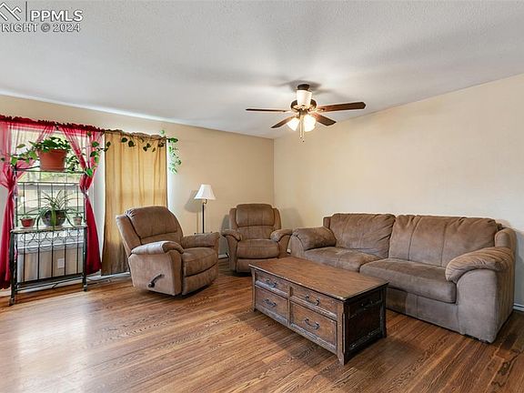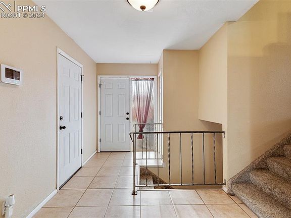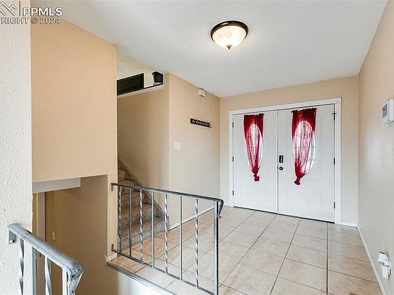This great bi-level home features 5 bedrooms, 3 baths and a 2-car garage. Attractive slate tile leads you to the double doors at the front entry. Step inside the grand tiled foyer where you can choose to ascend to the upper level, descend to the lower level or step outside onto the back deck. The upper level boasts an open concept living area to include a living room and dining area with hardwood floors and a kitchen with tile flooring. The kitchen displays granite look counters, island with informal seating, pantry and SS appliances. The range and microwave were new Nov 2023 and the refrigerator is only 3 years old. All kitchen appliances stay. There are 3 bedrooms on the upper level to include the master suite with double closets and attached 3/4 bath. Bedroom 2 is adjacent to the master and perfect for a nursery or child's room. Bedroom 3 is just across the hall. A full hall bath completes the upper level. On the lower level, you'll find an oversized family room, 2 bedrooms, 3/4 bath with extra large shower and tile floors, plus a spacious laundry/utility room with lots of storage space. Kids and pets will enjoy running and playing in the fully fenced yard. The dog run in the corner stays. You can relax and entertain family and friends on the 25x16 deck while enjoying the outdoors. This home includes a swamp cooler to keep you comfortable on hot days and nights. A new roof was installed April 2024. Furnace and water heater were new in 2021. This home also has a radon system installed! I-25 access, schools and bases nearby. NO HOA!