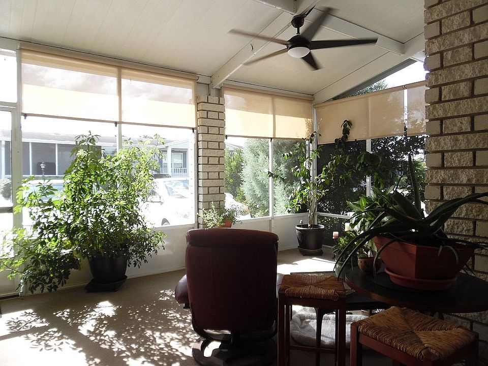 2 BEDROOM/2 BATH HOME is located in the Windmill Village community, which is a 55+ community. There is a monthly rent of approximately $700/month. The community is safe, quiet, and full of friendly and helpful neighbors. There's a beautiful pool, pickleball and tennis courts, a library, and lots of scheduled activities at the clubhouse including line dancing, bingo, poker, and special events/dances. You are 5 minutes to Walmart, Publix, Lowes, and the community library. You are across the street from a beautiful park with walking paths. This home has been recently refreshed with new living room carpeting, new ceiling fans, new kitchen tile, new dishwasher, new garbage disposal, new water heater, custom blinds, and newly installed fans in the screen room for comfort year round, new easy to use irrigation console. Don't let the square footage fool you, this home has additional living areas not included in the square footage with not 1 but 2 patios! There is a 4-season beautiful patio in the back of the home with sliding screen windows. In addition, the 2-car carport is a custom screened enclosure, making a HUGE and beautiful entertainment area and place to relax in peace and quiet. For couples it's a way to have your own place to do hobbies, woodworking, gardening etc...as the two attached storage areas have a potting shed and workshop area. All appliances stay including a front loader washer and dryer and French door refrigerator. Master bedroom has beautiful ceramic floors and an ensuite bathroom with a walk-in shower and updated vanity and faucet. The second bedroom also has an ensuite bathroom with a full tub and shower. Lots of storage throughout. Beautifully landscaped. WINDMILL VILLAGE IS ONLY 6 MILES TO DISNEY AND LOTS OF GREAT RESTAURANTS and SHOPPING CLOSE BY. CALL OR STOP BY AND SEE THE HOME. Brokered by Windmill Village/Sun Communities.