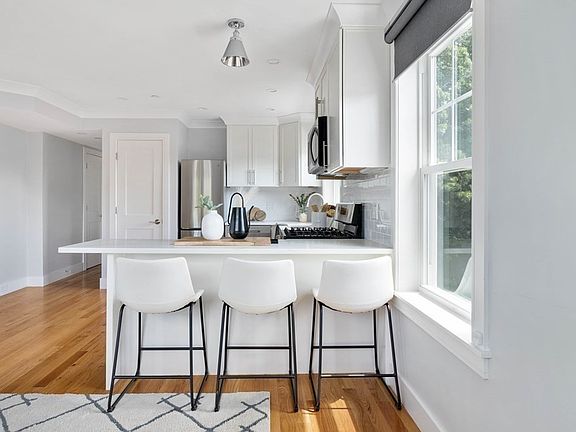 Come and experience the perfect blend of modern living and convenience in Roslindale! Gorgeous 2021 gut renovation offering a 2 bedroom penthouse level condo with a stunning array of stylish finishes. As you enter the home, you’ll be greeted by a spacious open floor plan that boasts gleaming hardwood floors, high ceilings and abundant natural light. The ample sized living area seamlessly connects to the designer kitchen, featuring white shaker cabinets, quartz countertops, stylish tiled back splash and stainless steel appliances. In-unit laundry, central air conditioning, additional lockable storage in the basement and a rear deck with an exclusive use area complete this home. Centrally located, you'll have easy access to various bus and transit options, making commuting a breeze. With Roslindale village just moments away, you can immerse yourself in the vibrant local community. Spend your weekends exploring the Farmer's Market during the day and savoring the diverse restaurant scene a