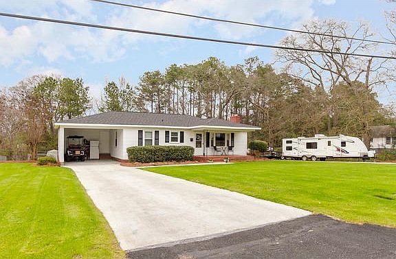 Adorable updated 3 bedrooms, 1 bath, 1,368 square foot, ranch home in downtown Edgefield on 1.14 acres. New architectural roof in 2019. Recently painted. Hardwood floors under carpet. Newer appliances and water heater. Gas fireplace in the living room. Nice sized laundry room and dining area off kitchen. Fully landscaped, fenced backyard, and single car attached carport.