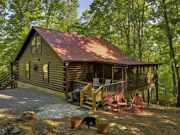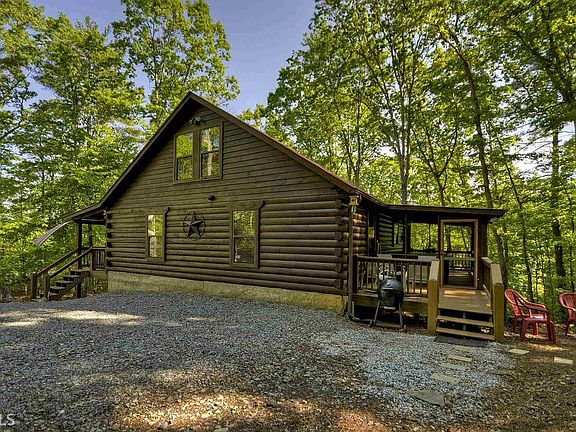 The mtns are calling & I must go??? This cozy log retreat is privately nestled in the heart of the N GA Mtns w easy access to natural amenities galore. This perfect mtn getaway is positioned on .68 pvt gentle ac. bordering the USFS, truly offering nature???s playground at your back door & the ultimate relaxation. In addition, this 2BR/2BA cabin w large loft boasts hardwood & stone floors throughout; a great open floorplan that is full of light; spacious kit; stone fp to warm up w on those cool evenings after enjoying the great outdoors; & a screened porch and firepit area. Whether youre considering a 2nd home for personal use, full time home, or rental investment, this home has everything you need, including an est. rental history. What are you waiting for?
