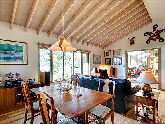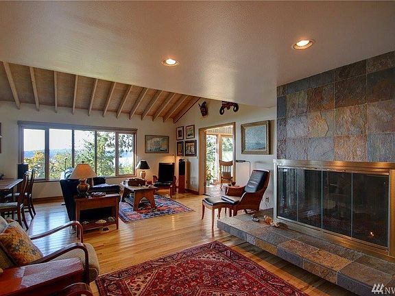 This Northwest Contemporary is nestled in a private setting, Impressive custom designed Lindell-Peterson home is one level living at its best. 3 bed 2 bath home has views of Skagit Bay. A well designed floor plan with rooms opening to spacious sun room. Quality materials, and attention to detail, apparent throughout. Gas fireplace, slate floors, granite, vaulted ceilings, large master bedroom with bath and walk in closet. Extra storage and office on lower levels. Easy care landscaping.