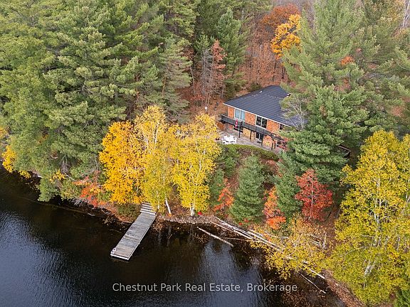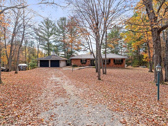 Nestled along the tranquil shores of Lake Waseosa, this 3-bedroom, 3-bathroom bungalow with a walkout offers 123 feet of water frontage and 2,679 sq. ft. of living space. With ideal southwest exposure, enjoy stunning sunsets and crystal-clear waters perfect for fishing and boating. The functional layout features large windows on the main level, filling the space with natural light. The kitchen and adjoining dining room, with a double-sided wood-burning fireplace, create a welcoming space for family gatherings. A three-season sunroom allows for outdoor enjoyment, while the living room walkout leads to a deck and seating area, ideal for summer evenings. The lower level includes a spacious recreation room with a wet bar, an office for remote work, a laundry room with a walkout to the side yard, and direct access to a generous patio. Just 15 minutes from downtown Huntsville, you'll have easy access to shops, dining, and essential services. With North Waseosa Lake Road directly off Highway 11 and maintained year-round, this lakeside retreat is easily accessible in all seasons.