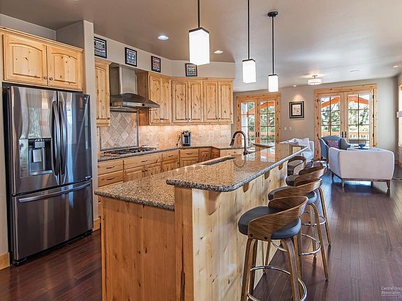 Beautiful custom home located at the top of Awbrey Heights with amazing easterly and city views! Quality craftsmanship throughout including knotty alder cabinetry, built-ins, wood wrapped windows, solid wood doors, beautiful hardwood floors and 2 stone fireplaces. Room for everyone in this large family home with a workout room, den/office and separate living/guest quarters downstairs with kitchenette and private entrance. Enjoy the luxurious master suite with gas fireplace, private deck and master bathroom with soaking tub and tiled shower. The gourmet kitchen features slab granite countertops, large island with eating bar & high end stainless steel appliances with wine fridge. Other features include an oversized garage with shop space and extra room for storage. Enjoy the outdoor living spaces and take in the gorgeous sunrises from the private decks and entertain with friends and watch the 4th of July fireworks on Pilot Butte!