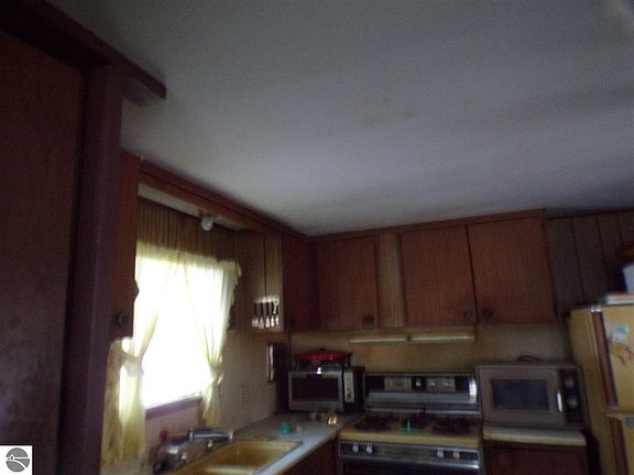 The structure is an older manufactured home with an addition and has a roof built over the structure. The structure sits back and is partially obstructed by trees. Be careful on the front deck as there are boards missing.