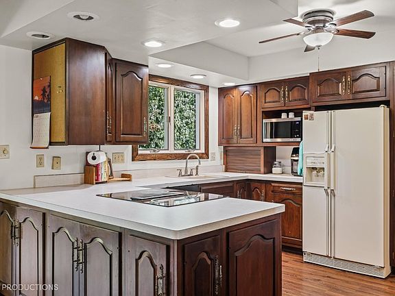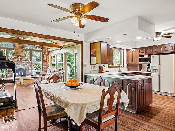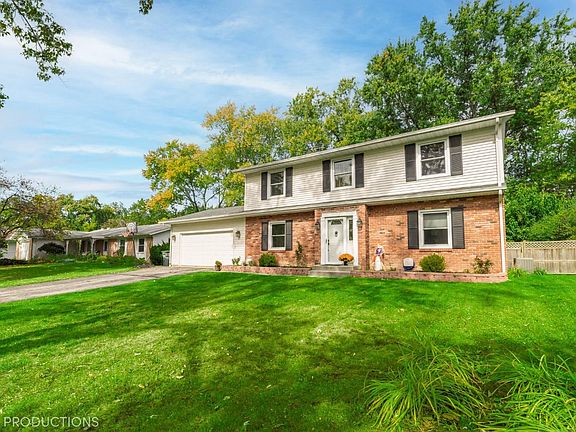 Spacious 4 bedroom, 2.5 bath two-story home located in the Forest Park area. The main level features a living room with hardwood floors (refinished in June 2023), dining room that opens to the kitchen with break nook, fabulous great room with natural light and wood burning fireplace, and a half bath. There is hardwood throughout (refinished June 2023) the upstairs. The primary bedroom has an attached 3/4 bath (remodeled 2019). 3 additional bedrooms (one with built-ins) and a full bath complete the upper level. The finished basement has a large rec room with pool table and amble storage. The fenced in yard with a chicken coop and raised plant beds make this home move-in ready. Updates include: laminate flooring (2021), Sliders (2019), Windows in front of home (2022), Siding (2019), Roof (2012). Call us to view this home!