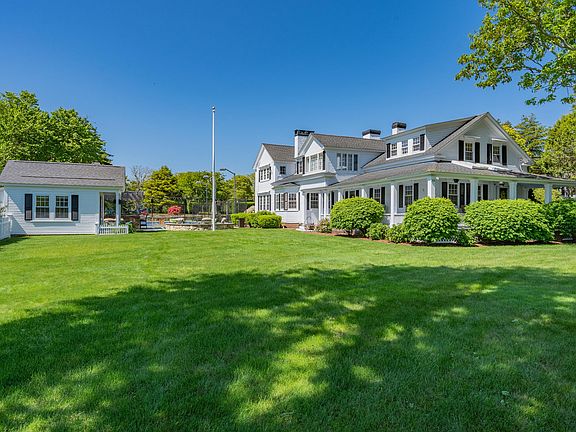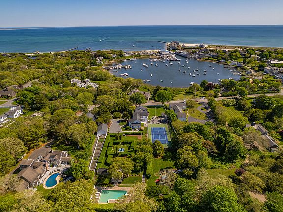 Overlooking Wychmere Harbor and a short stroll to Merkle beach and Wychmere Beach Club. This unique estate sits on 2.1 prime acres in picturesque Harwich Port with easy access to the downtown restaurants and shops. Enjoy peaks of the water from the breezy wrap-around porch or spend time by the private 900 sq/ft in-ground pool at the rear of the property with a fully equipped pool house for poolside lunches. The onsite entertainment continues with a commercial children's playground, tennis court and beautiful new outdoor kitchen for summer dining and evenings by the firepit. This renovated historic home boasts 7 bedrooms, 5 1/2 baths, 2 fireplaces, and it is loaded with original woodwork details and built ins. The home has a detached heated 3-car garage with a fully appointed two bedroom guest apartment above. There is also a nearby 2-story workshop building with open storage upstairs. Hedge-lined landscaped paths flank a sizable vegetable garden and lead past a central fountain to a potting shed with attached greenhouse perched just above the pool at the rear of the property. This lovely and beautifully landscaped estate is perfect for accommodating your extended family and friends.