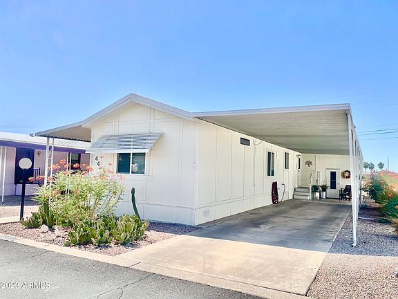DESIRABLE 55+ 2 BEDROOM 2 BATH, SPLIT FLOOR PLAN IN GATED RESORT STYLE COMMUNITY OF PUEBLO GRANDE! DRAMATIC HIGH BEAMED CEILINGS, BEAUTIFUL VINYL WOOD AND FLAG STONE FLOORING, NEWER ROOF, NEW WINDOWS, BRAND NEW WASHER/ DRYER & NEWER AC UNIT! LARGE COVERED PORCH FACING WEST TO WATCH THE ARIZONA SUNSETS IN A QUIET AND PEACEFUL LOCATION. OVERSIZED SHED IN CARPORT, PETS OK, WALK TO STORES, SHOPS & TRANSPORTATION! PUEBLO GRANDE IS A GATED COMMUNITY FULL OF ACTIVITIES, AMENITIES INCLUDE POOL/SPA, LIBRARY/MEDIA ROOM, CLUBHOUSE, SHUFFLEBOARD, BILLIARDS, DOG RUN, RV STORAGE, CARD ROOM AND SO MUCH MORE! LOW MONTHLY SPACE RENT OF 689! COME SPEND THE WINTERS IN DOCILE ARIZONA WEATHER AND ENJOY THE SALT RIVER, WILD HORSES, FISHING AND BOATING AT SAGUARO LAKE OR CANYON LAKE AND TORTILLA FLATS!