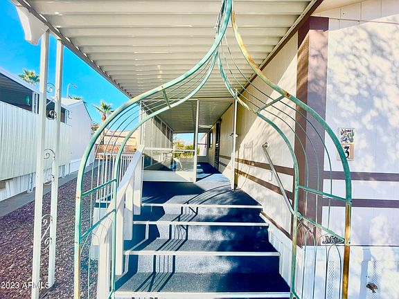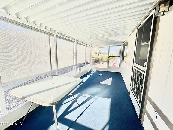 MODERN & UPDATED 2/2 WITH LARGE CORNER LOT AND SCREENED IN PORCH PLUS HUGE DECK IN SOUGHT AFTER GATED PUEBLO GRANDE 55+ RESORT COMMUNITY! HIGH VAULTED CEILINGS, NEW LAMINATE HARD SURFACE FLOORS, FRESHLY PAINTED, LARGE BEDROOMS & IMMACULATELY CLEAN! LARGE SCREENED IN FRONT PORCH AND BACK DECK WITH CUSTOM BUILT PRIVACY SCREENS AND CONCRETE SLAB FOR ENTERTAINING! OVERSIZED STORAGE SHED, WALK IN CLOSET AND SHOWER IN PRIMARY BEDROOM, EXTERIOR WINDOW SUN SHADES, CEILING FANS AND BEAUTIFUL FURNISHINGS INCLUDED! NO DETAIL HAS BEEN MISSED IN THIS HOME! LOW LAND LEASE OF 689 IN A CLOSE KNIT COMMUNITY WITH LOTS OF ACTIVITIES AND EVENTS! CLUBHOUSE WITH FULL KITCHEN FEATURES POOL/SPA, BILLIARDS ROOM, LIBARY/MEDIA ROOM, SHUFFLEBOARD AND HORSESHOES! WALK TO STORES AND CLOSE TO FREEWAY!