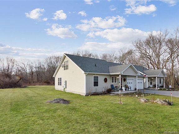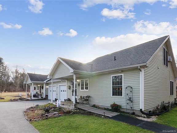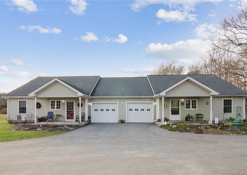 Exceptional duplex style home, would work well for an in-law setup or for extended family living. Great property for investors or owner occupants. Built in 2007, this home features two 1500+ square foot units, connected by an oversized single car garage for each unit. Bright open first floor features a large eat-in kitchen, living room with vaulted ceiling, spacious master bedroom, and full bath with laundry. The second floor has a large bedroom with a vaulted ceiling and a private full bath. The first floor has radiant heated floors, second floor has a separate zone of hot water baseboard heat, and each unit has 3 wall unit air conditioners. Amenities include granite counters, tile floors, and lots of closet space. Beautiful 5.86 property with stonewalls provides the perfect setting. Home is set down a long private driveway, with a large open backyard bordered by trees for additional privacy. Underground utilities, oil heat, private well and septic. Convenient location with easy access to the highway for commuting and shopping.