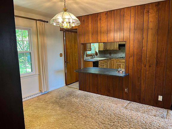 A little bit of TLC will make this 1400 sq. ft. ranch a lovely place to live. Nice kitchen opens to a large L-shaped LR/DR with an opening from the kitchen that will make conversation and serving very convenient. LR has a large brick FP that is flanked by bookshelves and storage. The bold flagstone hearth makes this room quite attractive. Previous owner converted the garage but left the door for the next owner who might prefer a garage to living space. This area is currently a 3rd BR or office area and a utility room. Primary BR has lots of attractive built-ins for closet/storage space. Replacement windows with grids provide a good look both for the interior and to the exterior of the home--good curb appeal. Some hardwood flooring. At one time, the yard was a showplace. With work, it can be again. Back yard is private and features 2 flagstone patio areas and a flagstone walk. Front entry has a pretty multi-colored brick walk. Lots of perennials. Property is being sold "as is."