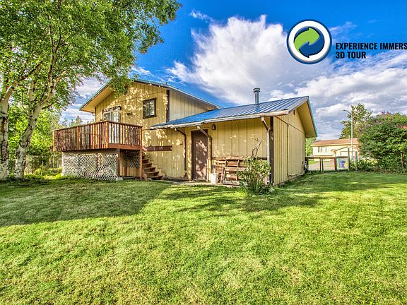 3D Immersive Virtual Tour available! Excellent central Palmer location, yet home has a private feel with a fenced yard & beautiful landscaping! Situated on a corner lot with an established lawn & greenery. On the top level is an open layout with the kitchen, dining, living areas & a deck that leads to the fenced back yard with a shed. The bedrooms, bath & laundry is on the main level. Located just across the street from a small park! Home used to have a wood stove, so the plumbing is still in place. The kitchen has a nice size pantry. There are rain gutters on the exterior and the a concrete pad in front of the garage, along with concrete steps to the entry. Enstar meter number 140354 average per month $83 MEA meter number A02024174 average per month $82