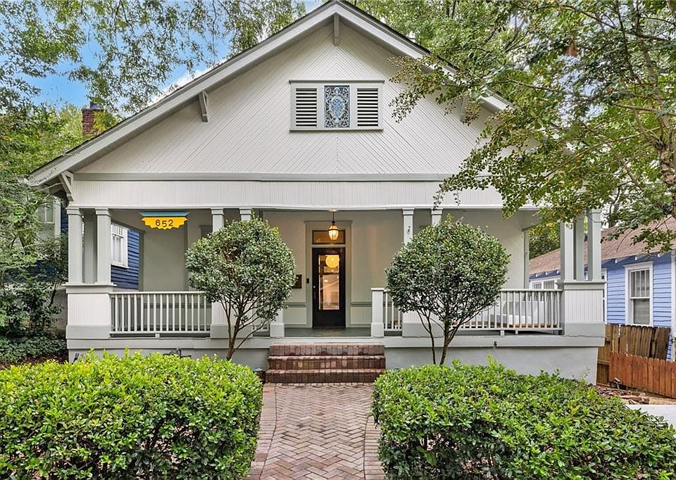 Nestled on one of Grant Park's most beloved streets, this charming 1911 Victorian bungalow effortlessly combines the allure of historic charm with modern-day conveniences. A generously sized covered front porch warmly welcomes you to this exceptional residence, adorned with original heart pine floors, intricate millwork, and four exquisite majolica tile fireplaces. High ceilings and expansive rooms are bathed in natural light, creating a spacious and inviting atmosphere throughout. The grand living and dining rooms provide an ideal setting for gatherings and entertainment, while the modern kitchen, featuring elegant marble floors and a convenient walk-in pantry, is a haven for culinary enthusiasts. The expansive primary suite comfortably accommodates large sitting area and boasts a generously proportioned en-suite bathroom, a custom walk-in closet, and french doors that open onto the spacious rear deck, creating a private retreat within the home. Additional highlights of this residence include two secondary bedrooms sharing a well-appointed hall bathroom, a sizable laundry room with ample storage, and a dedicated office space conveniently situated off the central hallway. The rear yard offers a true oasis, featuring a river-stone patio and the shade of mature trees. Ideally located just one block from the park, two blocks from the Southside BeltLine, and mere minutes from major highways, this property epitomizes the quintessential essence of intown living at its finest.