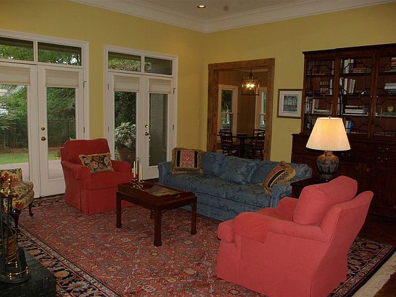 Heart Of Ridgeland!!! This home is gorgeous and move in ready!! Absolutely fabulous finishes and detail throughout this home!! 12 foot ceilings in the living area are unique, 10 foot ceilings in the dining room, entrance foyer and front bedroom currently being used as a den, so much about this home is unique and special, from the wooden shutters, blinds, plantation shutters and the Spanish cedar fort doors with hand forged hardware. The professional landscaping is amazing and the home has such a nice flow! It is a split plan with 4 bedrooms , 3.5 baths and a bonus room upstairs. 3 car garage is a huge plus! The master bedroom is large with unique reading lights above the master bed area. The closet is fantastic in the master! Living area has subtle cabinetry to store electronics or other items. Kitchen has a great flow for entertaining and cooking with family and friends! Beautiful bar area with glass shelving just off the kitchen near the formal dining room with plantation shutters! The home has a split plan with 3 bedroom and 2 baths on the east side of the home, all nice size room with walk-in closets! There is an extra bedroom, office or bonus room above the garage with built-ins and a closet. There is a lot of storage space in this home and the entire home feels warm and cozy!